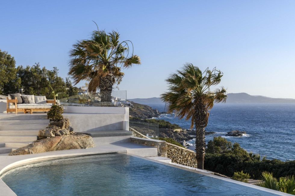 Private swimming pool with panoramic sea views