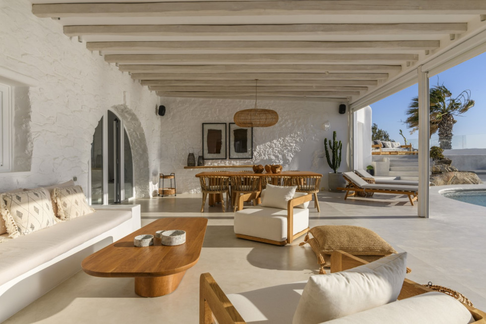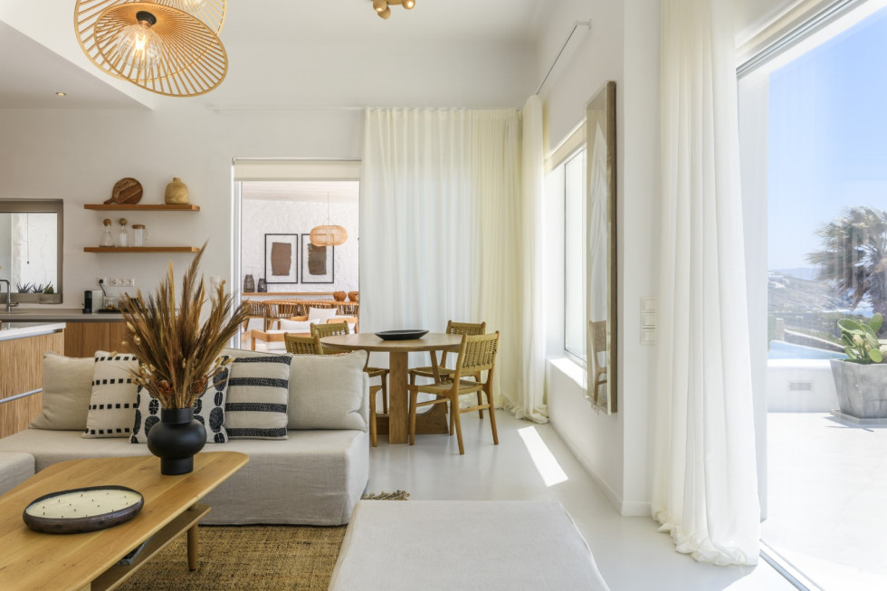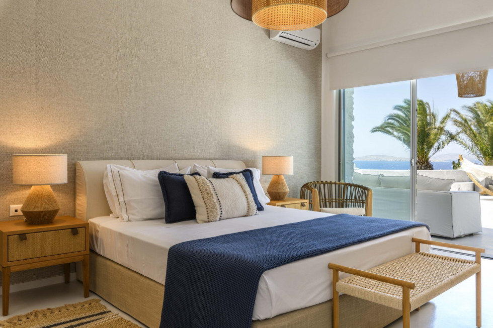 With its front-row beach access, expansive terraces, private pool, and outdoor jacuzzi, Villa Solis is an exceptional choice for families, groups of friends, or special celebrations seeking a truly immersive Mykonian experience.