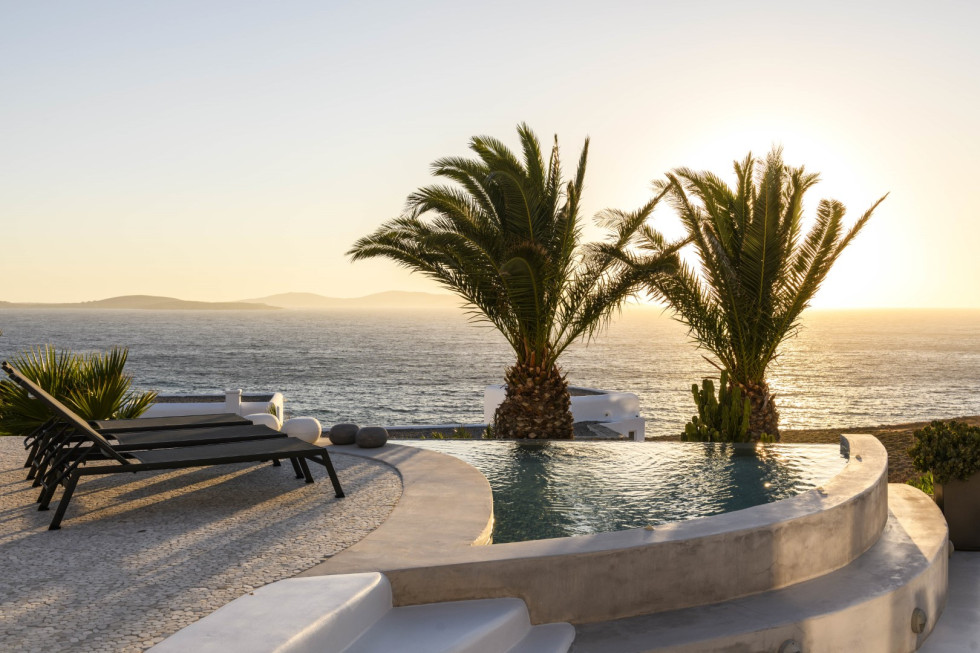 Villa Solis is a captivating beachfront luxury retreat set directly on the pristine shores of Mykonos, offering uninterrupted sea views and unforgettable sunsets over the Aegean and the sacred island of Delos. Designed for elegant seaside living, the villa blends traditional Cycladic architecture with modern comforts, creating an atmosphere of effortless luxury and relaxation.