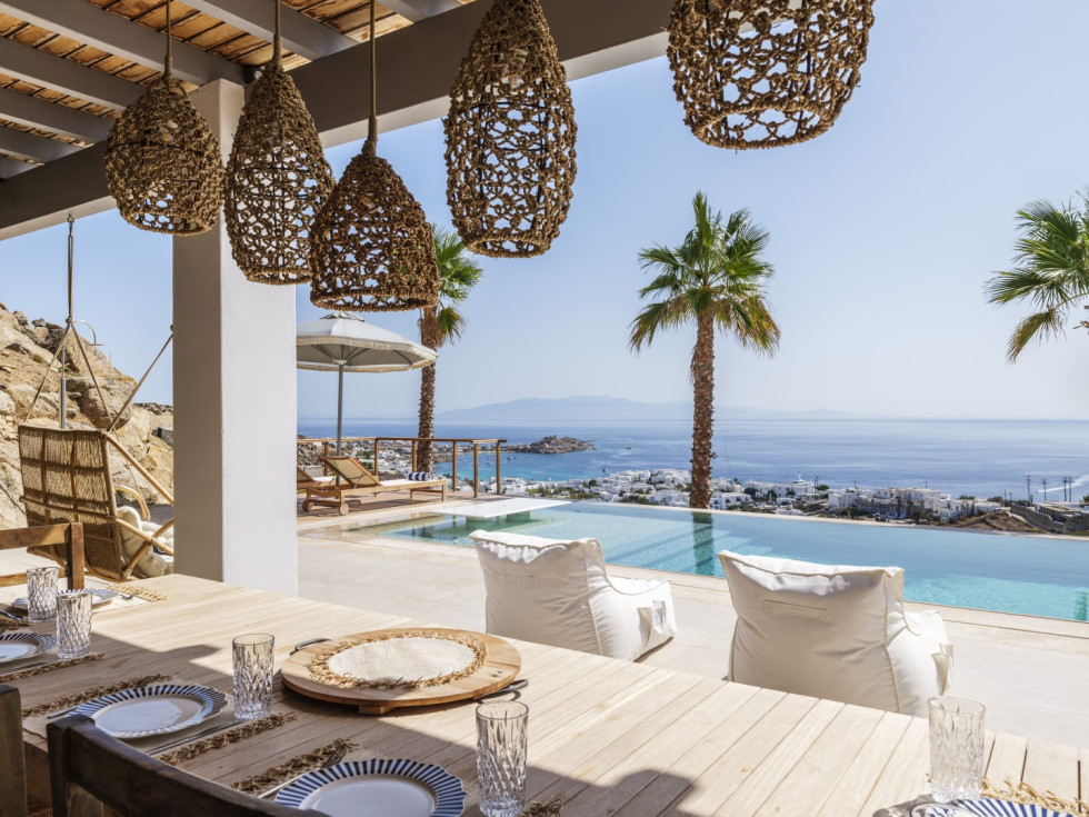 At Villa Luminis, outdoor living takes center stage, offering endless opportunities to relax, dine, and entertain under the Mykonian sun.