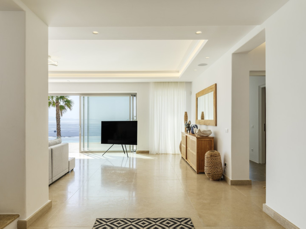 - Spacious Sitting Area — With TV, open-plan design, and panoramic sea views.