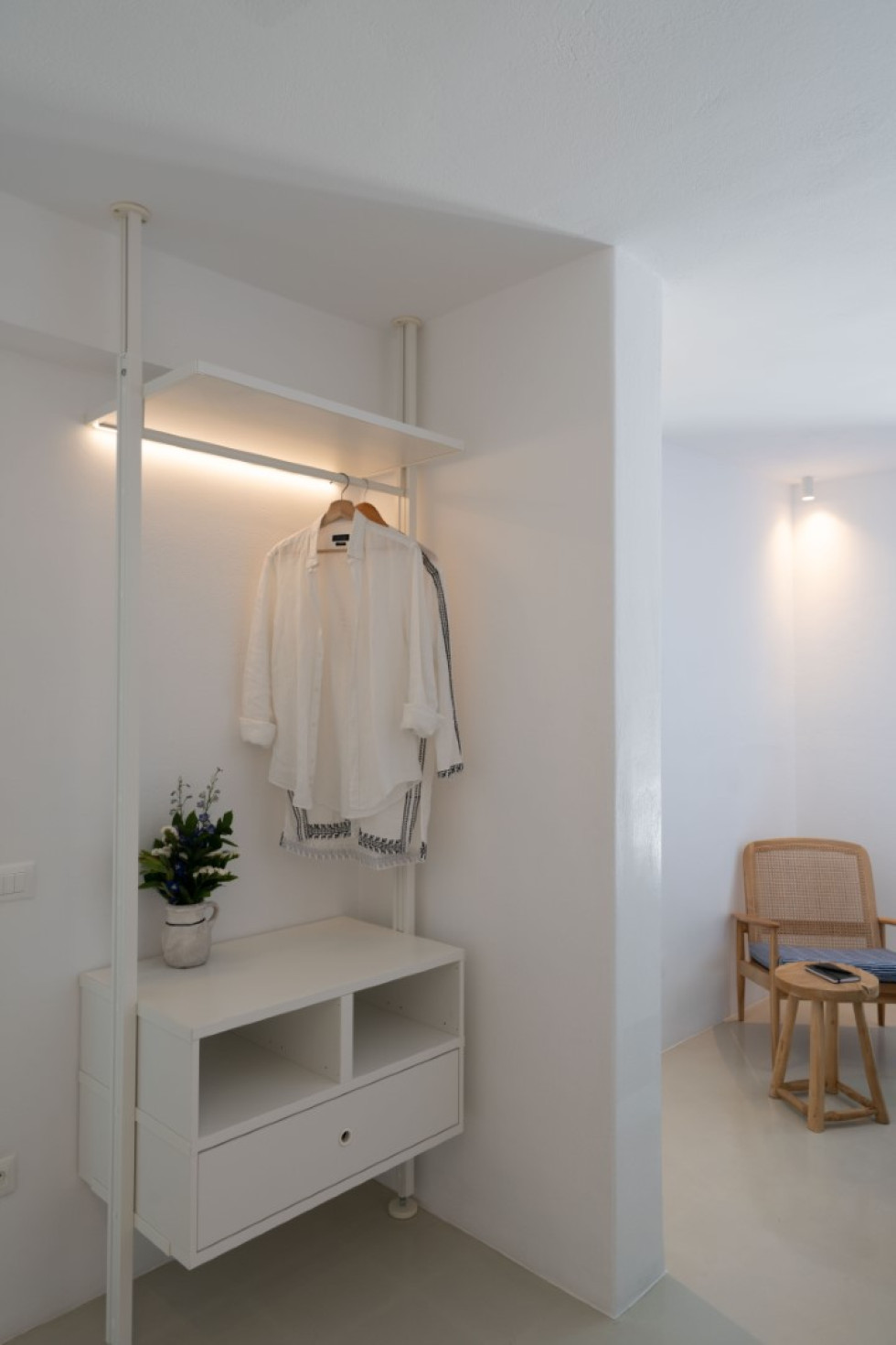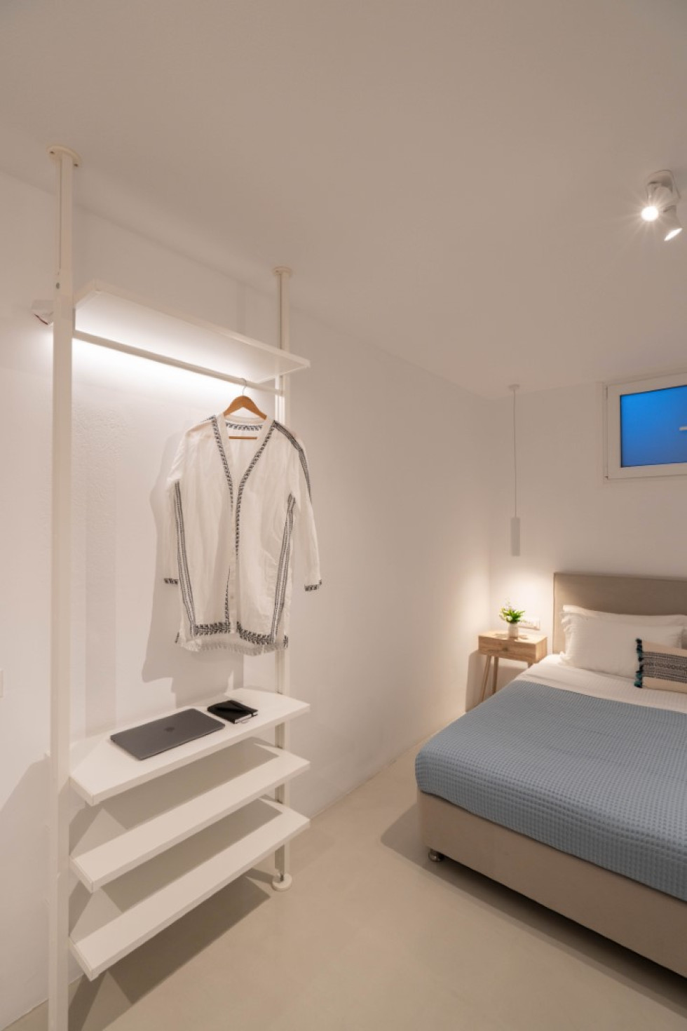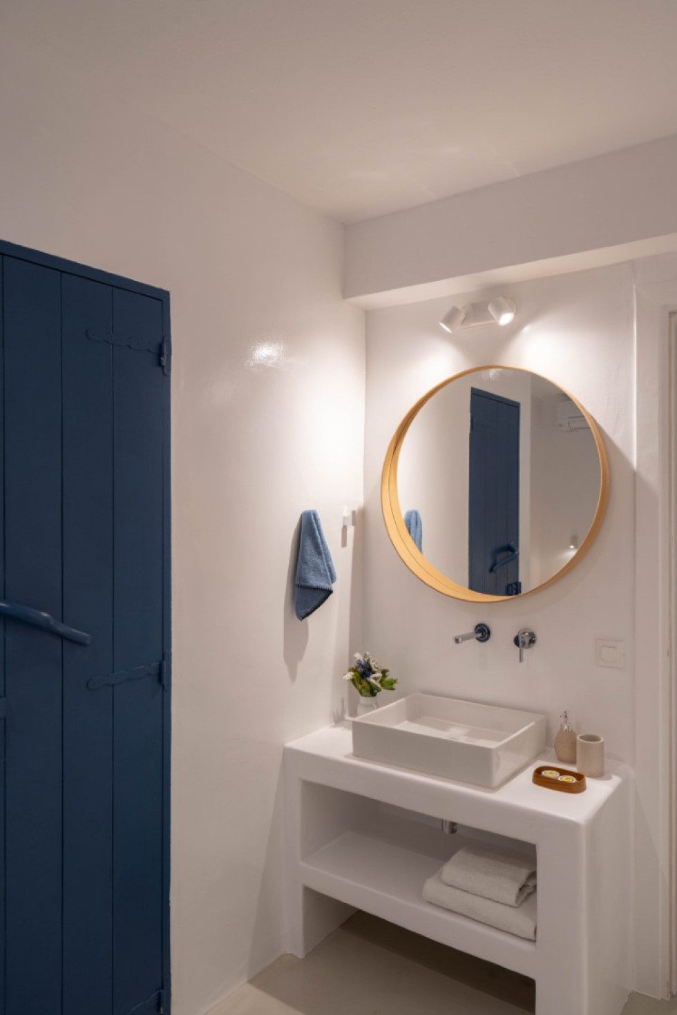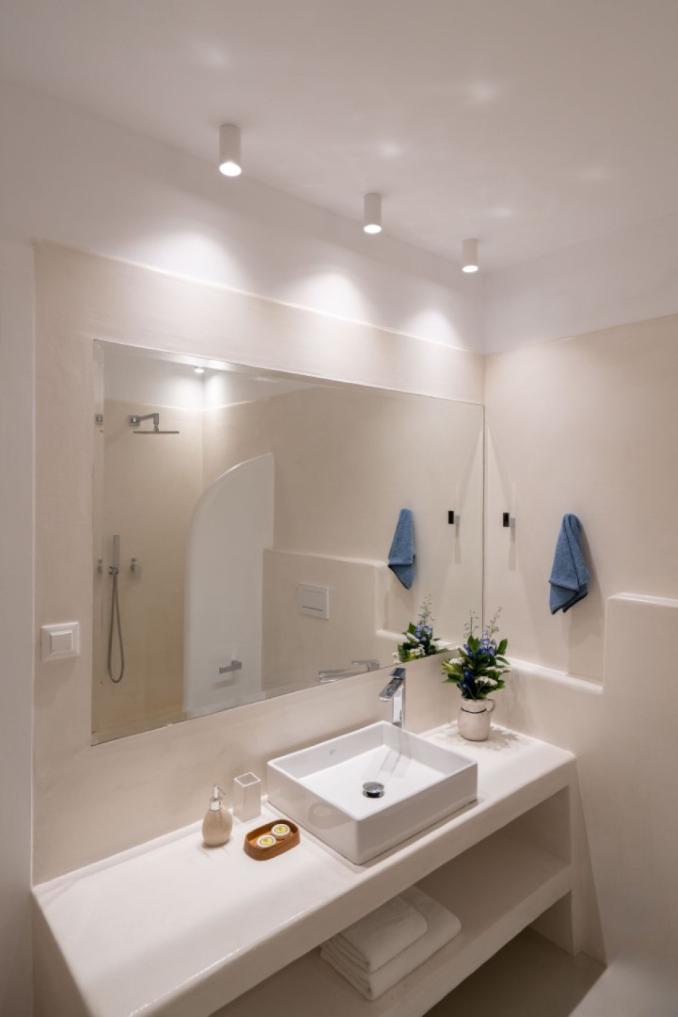 Villa Athella’s design masterfully combines contemporary elegance with Cycladic simplicity. Natural materials and minimalist interiors create a serene ambiance, while large glass doors seamlessly connect the interior with the spectacular outdoor spaces, ensuring the stunning views are always in sight.