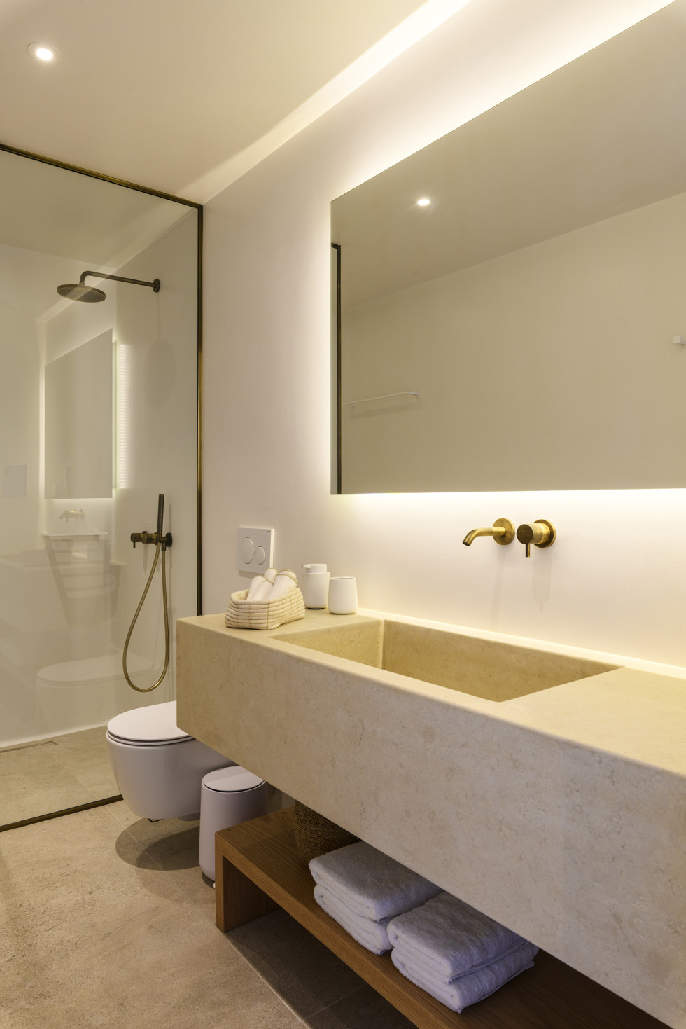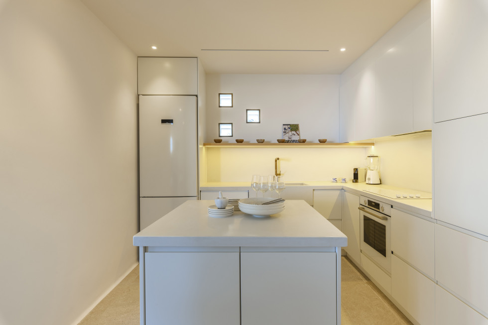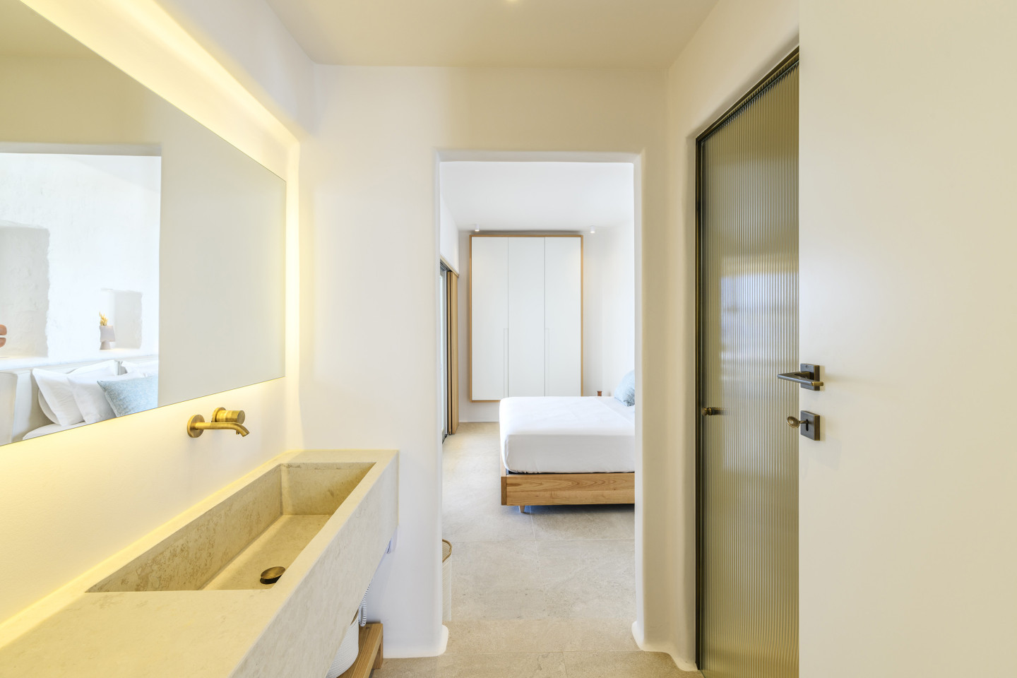 The villa’s interiors are a harmonious blend of modern aesthetics and Cycladic charm, featuring sleek lines, natural textures, and luxurious furnishings. Sunlit open spaces with expansive glass doors allow the stunning views to become an integral part of the villa’s ambiance.